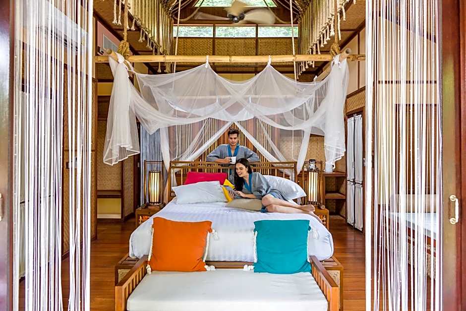 Floating on the river, this luxurious villa features a private sun deck with a day bed. A 32-inch flat-screen TV, comfortable bed with big pillows, and umbrellas are also included. Please note that rates are inclusive of breakfast and dinner.